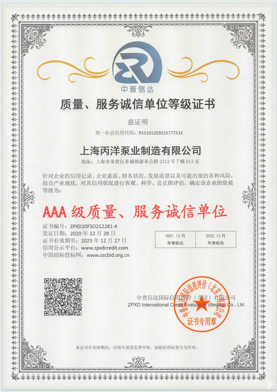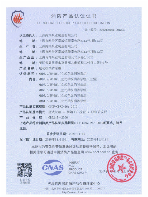 上海丙洋泵業集團有限公司是專業從事水泵、生活消防自動給水設備及水泵智能控制的開發、生產、銷售為一體的生產型現代化民營企業。公司生產車間1.3萬平方、主要產品擁有立式單級消防泵、立式多級消防泵、消火栓泵、噴淋泵、排污泵、變頻成套供水設備、消防增壓穩壓設備、污水提升設備、管道離心泵、立臥式消防泵、柴油機消防泵、深井消防泵、化工泵,多級離心泵、不銹鋼多級離心泵、自吸泵、水泵控制柜等系列產品。丙洋泵業在以質量求生存,科技創興;追求卓越,走向未來的方針,不斷開拓進取、創新發展,在長期的實踐中形成了一套完整的質量管理體系,本公司以優質的管理、優質的產品、優質的服務贏得了國內廣大用戶的信賴和好評。